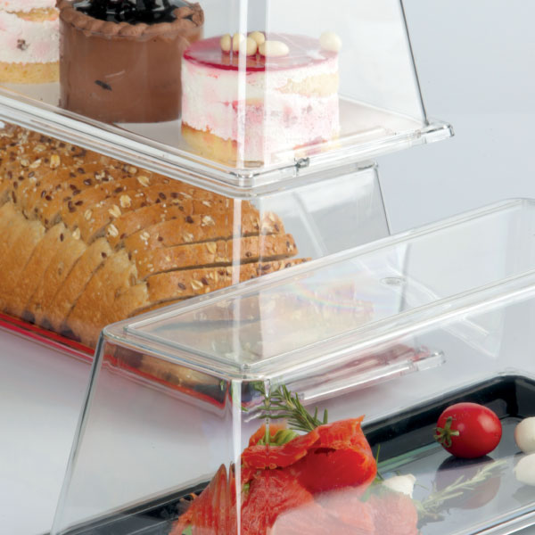 Посуда из поликарбоната особо прочная, лёгкая и эстетичная. Бокалы, фужеры, стаканы из поликарбоната по внешнему виду не отличимы от стекла и могут быть прозрачными или матовыми. Могут иметь вид цветного стекла: красного, синено, зелёного, жёлтого, фиолетового. Посуда (тарелки, сервировочные блюда, бокалы...) могут быть монолитно одноцветными— как белыми, так и черными, красными, ораньжевыми, голубыми...и имеют современный дизайн.